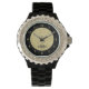 Diese hübsche Uhr hat ein goldbedrucktes Hintergrundmuster, das wie Brokat aussieht. Ein schwarzer Rundrahmen macht die hellen Goldzahlen leicht lesbar. Ihr dreiteiliges Monogramm in schwarz fügt eine persönliche Touch hinzu. Elegant!