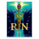 GOLD CADUCEUS REGISTRIERT NURSE SYMBOL Aqua Blue