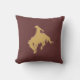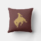 Dieses Kissen zeigt, was jeder über Wyoming weiß. Pferde buck und cowboys fahren sie! Es ist mit einem goldenen Cowboy und einem buckligen Pferd-Silhouette-Bild auf einem dunkelbraunen Hintergrund ausgestattet. Das gleiche Bild erscheint auf jeder Seite des Kissens. *Dieses Design verwendet Bild © Graphics Factory.com*