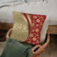 Gold & Deep Red Floral Damask Modernes Design Kissen
