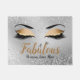 Gold A Fantastische Frauen Leben Hier Glitzer Eyes Doormat verfügt über große Augenlider mit goldenem Glitzer-Augape, Diamanteffektliner mit langen schwarzen Wimpern auf einem silbernen Glitzer-Effekt-Hintergrund. Das Wort "fabulous" wird in einem Skript in einem passenden Gold geschrieben, mit einer kleinen silbernen Königin-Krone, die an der Spitze der Schleife auf dem 'L' hängt. 'A' und 'Women Lives Here' sind in schwarz geschriebenem, kleinerem Skript über und unter dem Wort fabelhaft geschrieben. Entworfen von Jacqueline.