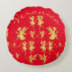 Gold Fees mit Pixie Staub auf rotem Monogramm | Rundes Kissen