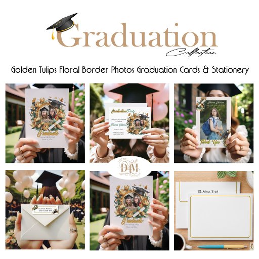 Modern Golden Tulips Floral Border GraduationDesignt von Houria Sabrine
