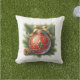 Accent your porch or patio decor with this Christmas-designed throw pillow. This pillow features a gold flourish design on a red ornament, set against a background of pine branches, creating a vintage, eye-appealing accent. AI art designed by Susang6.