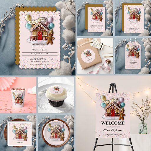 Gold Gingerbread House Baby Dusche Einladung