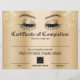Moderne Gold Lashes & Brows Salon Certificate of Completion Awards.