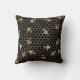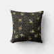 Gold Queen Bees and Honeycomb on Black Kissen