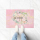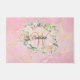 Hübsche Monogramm-Doormat, mit einem schönen weißen Skriptnamen mit einem Kompliment Gold-Initial, gerahmt durch eine zarte Aquarellgarland florale Rose auf einem rosa Geode agate Hintergrund. Personalisieren Sie sich, um ein besonderes Geschenk zu erhalten! Entwickelt von Thisisnotme©