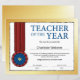 Gold Teacher of the Year Certificate Award