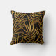 Dieses Kopfkissen mit goldfarbenen tropischen Blätter auf einem dramatischen schwarzen Hintergrund. Beide Seiten des Kissens haben das gleiche Muster.