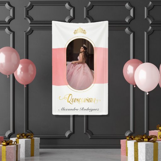 Gold and Rose Pink Photo Quinceanera Designt von Susan Villas Lewis