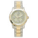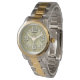 Das Gesicht der Uhr ist so konzipiert, dass es mit Gold und Silber im Uhrband übereinstimmt. Diamant gemusterter grafischer Hintergrund, geprägt und texturiert in Zahlen. Mit Sternen, die die restlichen acht Zahlen darstellen. Alles in Gold und Weiß.