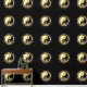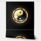 Schmuck, Gold und schwarzes Yin auf schwarzem Hintergrund. Gold Yin Yang.