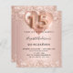 Für eine elegante Quinceañera, 15. Eine Rose goldener Hintergrund. Mit Rose Gold, rosa Imitat Glitzern und Ballons dekoriert. Personalisieren und fügen Sie einen Namen und Party-Details. Der Name ist mit einem handgeschriebenen Stil Skript geschrieben, Nummer 15 mit ballon Stil Schriftart.