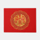 Golddoppeltes Glück-Symbol im Pfingstrosen-Rahmen Fußmatte