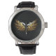 Golden Angel Wings auf schwarzem Hintergrund Armbanduhr