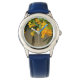 Kinderuhr aus Edelstahl mit blauem Lederarmband