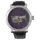 Uhr, Vintage Männeruhr mit schwarzem Lederarmband