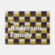 Farbkombination aus Gold, Beige, Braun und Dunkelblau. Ein elegantes Design dank der klaren Linien und der minimalistischen Linien. Machen Sie die Türmatte selbst, indem Sie Ihren Familiennamen hinzufügen. Und lass deinen Nachbarn und Besuchern zu wissen, wo sie stehen.