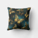 Ein elegantes Kissen mit Schmetterlingsmuster in glänzenden goldenen Farbtönen und leuchtender Blues.