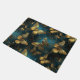 Eine elegante Türmatte mit einem Schmetterlingsmuster in glitzernden goldenen Farbtönen und leuchtender Blues.