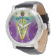 GOLDEN CADUCEUS VETERINÄRSYMBOL / Lila grün Armbanduhr