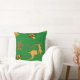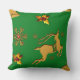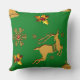 Ein festliches Weihnachtskissen mit einem goldenen Rentier, Goldgräber mit roten Rupien für Beeren, goldene Schneeflocken und Stars-Set vor einem festlichen, traditionell grünen Hintergrund, um Ihre Weihnachtsweihnachtsfeier in dieser Weihnachtszeit farbenfroh und festlich zu gestalten.