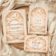 A luminous celestial design featuring delicate crescent moons and scattered constellation stars across a warm parchment background. A refined gold border frames the composition, while elegant script typography creates a graceful focal point worthy of such a meaningful milestone. The soft ivory and champagne tones give the entire piece a timeless, radiant glow. Perfect for a quinceañera celebration that feels romantic, elevated, and touched by starlight.