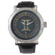 Uhr, Vintage Männeruhr mit schwarzem Lederarmband