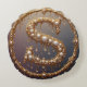 Luxurious gold letter monogram embellished with pearls, diamonds and ornate baroque filigree in a circular decorative frame; elegant, regal and highly detailed design for branding or editorial use.