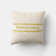 Kopfkissen mit schönen goldfarbenen Metallaussehen Polka Punkte auf weißem Hintergrund. Heimkehr kann personalisiert sein. Zuhause und Familie sind unser Schatz!