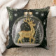Ein naher Aufstieg in ein glitzerndes Weihnachtsschmuck mit einem goldenen Rentier, umgeben von einer schneebedeckten Szene und immergrünen Bäumen. Die Dekoration spiegelt anmutig das festliche und magische Wesen der Urlaubssaison wider.