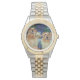 Diese Uhr zeigt goldene Retrievers, die als Feen verkleidet sind, die in ihren Mund Ruder halten.