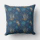 Ein ruhiges und elegantes, ozeanisch inspiriert Kissen mit goldfarbenem Seestern, zartem Korallenriff und sanften blauen Korallen, das alles Set vor einem beruhigenden blauen Hintergrund. Dieses marinen Design besticht durch seinen Küstenstreifen und eine luxuriöse Drehung, die sich ideal für einen entspannten Strandaufenthalt und eine elegante Atmosphäre im Sommer eignet. Ideal für Sommer-, Tropen-, Strand- und Wassersportler.