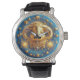 Golden Taurus Symbol On Blue Circle Armbanduhr