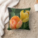 Pfirsich und goldfarbene Tulpen schmücken dieses kissenförmige Baumwollkissendekor, schöne Farben !