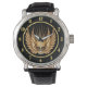 Uhr, Vintage Männeruhr mit schwarzem Lederarmband