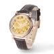 Ein buntes Uhrengesicht mit quadratischem, rechteckigem, gefliestem und gelb-weißem Blockdesign. Die schwarzen Zahlen sind eine Vorlage, die Sie mit der Option Anpassen entfernen können. Wählen Sie aus einer Vielzahl von Uhrenbandstilen. Sie können dieses Design auch dort übertragen, wo es passend zu einem anderen Produkt in der Scroll-Bar passt, wie z.B. der Wanduhr oder der Taschenuhr.