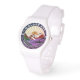 Uhr, Kinderuhr aus Edelstahluhr mit lila Lederarmband