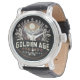 Uhr, Vintage Männeruhr mit schwarzem Lederarmband