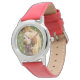 Uhr, Kinderuhr aus Edelstahl mit rosa Lederarmband