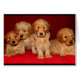 Ein Foto von vier bezaubernden goldendoodle Welpen, zusammengeschustert vor einem roten Hintergrund, ist das Thema meiner "Goldendoodle Puppy Any Occasion Card. Die Innenseite der Karte wird bewusst leer verlassen, sodass die Karte für jeden Anlass verwendet werden kann.
