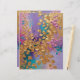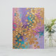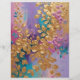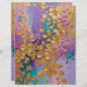 goldfarbene Blume auf rosa, lila, lila und türkisfarbenen Untergründen.