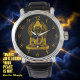 Goldene Buddha Skulptur in der Pose Serene Meditat Armbanduhr