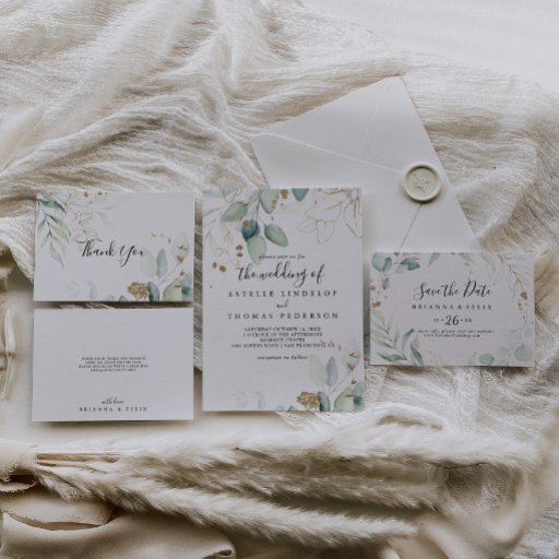 Gold Eucalyptus Calligraphy Wedding CollectionDesignt von Lazare Kokolo