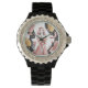 Uhr, Vintage Männeruhr mit schwarzem Lederarmband