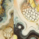 Ein abstraktes Gemälde mit goldenen Flüssen, die sich durch die Farben Weiß, Rot, Blau und Schwarz schlängeln. Die dynamischen Muster entstehen durch die Technik des Fluid Paintings.
