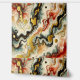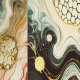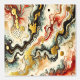 Ein abstraktes Gemälde mit goldenen Flüssen, die sich durch die Farben Weiß, Rot, Blau und Schwarz schlängeln. Die dynamischen Muster entstehen durch die Technik des Fluid Paintings.