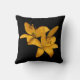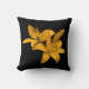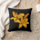 Dieses Wurfskissen kennzeichnet ein übersichtliches Design von zwei goldenen gelben asiatischen Lilien gegen einen reinen schwarzen Hintergrund. Das Bild wird auf der Rückseite wiederholt.