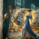 Treten Sie ein in eine Welt zeitloser Eleganz mit diesem atemberaubenden Jugendstil-inspirierten Design, das eine anmutige Göttin mit fließendem Saphir und Goldgewebe enthält. Umgeben von goldenen Blumen und sanften blauen Blüten, steht sie in einem strahlenden Heiligenschein, der himmlische Symbolik und klassische Schönheit hervorruft. Die ausgeglichene Symmetrie, die verzierten Blumenmotive und die luxuriöse Goldpalette, Blau und Elfenbein harmonieren nahtlos mit den fließenden Kurven und der dekorativen Geometrie, die für die Jugendstil-Zeit typisch sind. Ideal für Mythologen, Fantasy-Ästhetik und Vintage Eleganz, bringt dieses Stück eine regale und ätherische Präsenz in jeden Raum. Ob als Kernstück oder in eine größere dekorative Kollektion integriert, strahlt es eine raffinierte, feminine Energie aus, die sich sowohl nostalgisch als auch zeitlos anfühlt. AI generierte Kunstwerke.